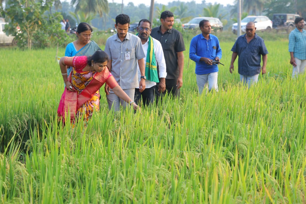 మంత్రి అనిత పొలం పిలుస్తోంది కార్యక్రమంలో భాగంగా డ్రోన్ సాయంతో సేంద్రీయ ఎరువుల పిచికారీ చేయడంతో పాటు, వరి పొలంలోకి దిగి స్వయంగా డ్రోన్ను ఆపరేట్ చేస్తూ పంట పరిస్థితులను వివరంగా పరిశీలించారు. అనంతరం రైతు వారోత్సవాల సందర్భంగా ఏర్పాటు చేసిన వివిధ స్టాళ్లను కూడా పరిశీలించారు.