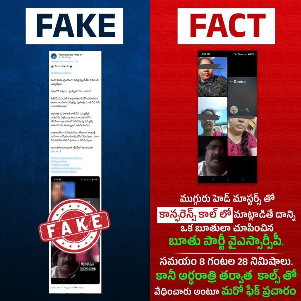 నిన్న హెడ్మాస్టర్లతో ఎమ్మెల్యే కూన రవికుమార్ మాట్లాడిన కాన్ఫరెన్స్ కాల్ను వక్రీకరించి, వైసీపీ విష ప్రచారం చేస్తోంది. కాన్ఫరెన్స్ కాల్లో ముగ్గురు హెడ్మాస్టర్లు ఉన్నా, ఒంటరిగా కాల్ చేసి వేధించారని తప్పుడు పోస్టులు వేస్తున్నారు. 8.28 నిమిషాలకు జరిగిన కాన్ఫరెన్స్ కాల్ను అర్ధరాత్రి అంటూ వక్రీకరించడం వైసీపీ కుట్ర రాజకీయాలకు పరాకాష్ట.
