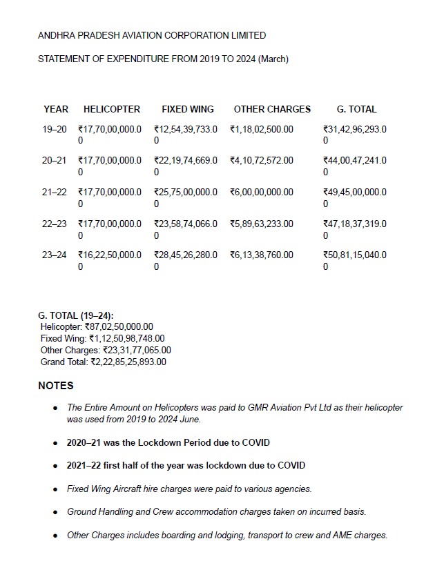 2019 నుంచి 2024 మార్చి వరకు.. కేవలం ఐదేళ్ల పాలనలో, ముఖ్యమంత్రి ప్రయాణాల కోసం ప్రజల సొమ్మును దారుణంగా ఖర్చు చేశారు. హెలికాప్టర్లు, స్పెషల్ ఫ్లైట్లలో విలాసవంతమైన ప్రయాణాల కోసం ఆంధ్రప్రదేశ్ ఏవియేషన్ కార్పొరేషన్ లిమిటెడ్ (APAC) లెక్కల ప్రకారం ఖర్చు చేసిన మొత్తం ఎంతో తెలుసా?