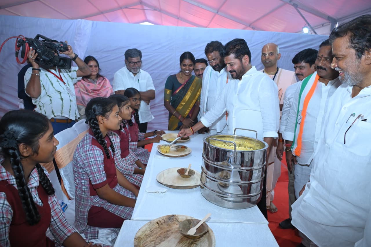 కొడంగల్లో హరేకృష్ణ సంస్థ (HKM) వారి ఆధునిక అల్పాహార వంటశాల (సెంట్రలైజ్డ్ కమ్యూనిటీ కిచెన్) ను పరిశీలించారు. అనంతరం అక్షయపాత్ర ఫౌండేషన్ (Akshaya Patra Foundation) ఆధ్వర్యంలో మిడ్ డే కిచెన్ భవనానికి భూమి పూజ నిర్వహించారు. ఇదే సందర్భంగా నియోజకవర్గంలో రూ. 103 కోట్లతో వివిధ అభివృద్ధి పథకాలకు శంకుస్థాపన చేసి సంక్షేమ పథకాలకు సంబంధించి లబ్దిదారులకు చెక్కులు, చీరలను పంపిణీ చేశారు.