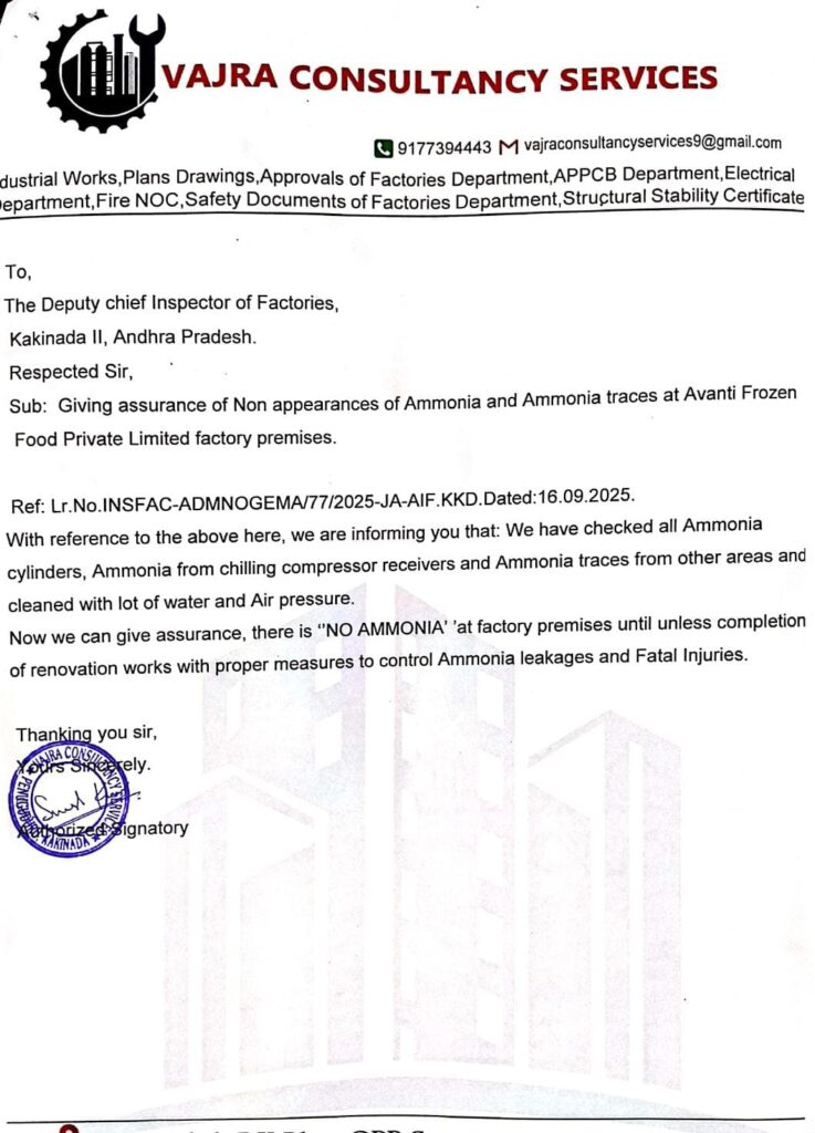 కార్మికశాఖలోని ఫ్యాక్టరీస్ విభాగంలో ఆ విభాగపు అధికారుల అసమర్థత ఏ స్ధాయిలో ఉంది? కన్సల్టెంట్లకు ఎంత లోకువయ్యారు? వారితో ఏ స్థాయిలో అంటకాగుతున్నారో చెప్పడానికి ఇదో చిన్న ఉదాహరణ. కొద్దిరోజుల క్రితం కాకినాడ పరిథిలోని అవంతి ఫ్రోజెన్స్ ఫుడ్ ప్రైవేట్ లిమిటెడ్ అదే కంపెనీలో ఒక ప్రమాదం జరిగితే, అధికారులు దానికి నోటీసులు జారీ చేశారట. కంపెనీ ఆవరణలో అమ్మోనియా లేదు. ఇకపై