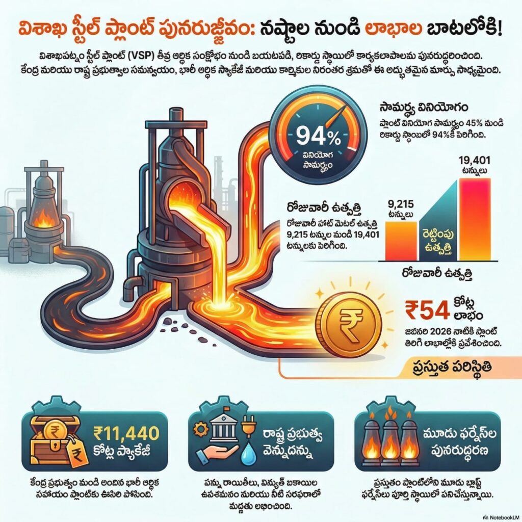 “విశాఖ ఉక్కు.. ఆంధ్రుల హక్కు” అన్న నినాదం గాలిలో కలిసిపోతుందేమో అన్న భయం అందరిలో ఉన్న తరుణంలో.. జనవరి 2026 నాటికి ₹54 కోట్ల లాభం అన్న వార్త ఒక సంచలనం. అయితే ఈ విజయం వెనుక ఉన్న అసలైన కథ ఒక సినిమా కథ కంటే తక్కువేం కాదు.