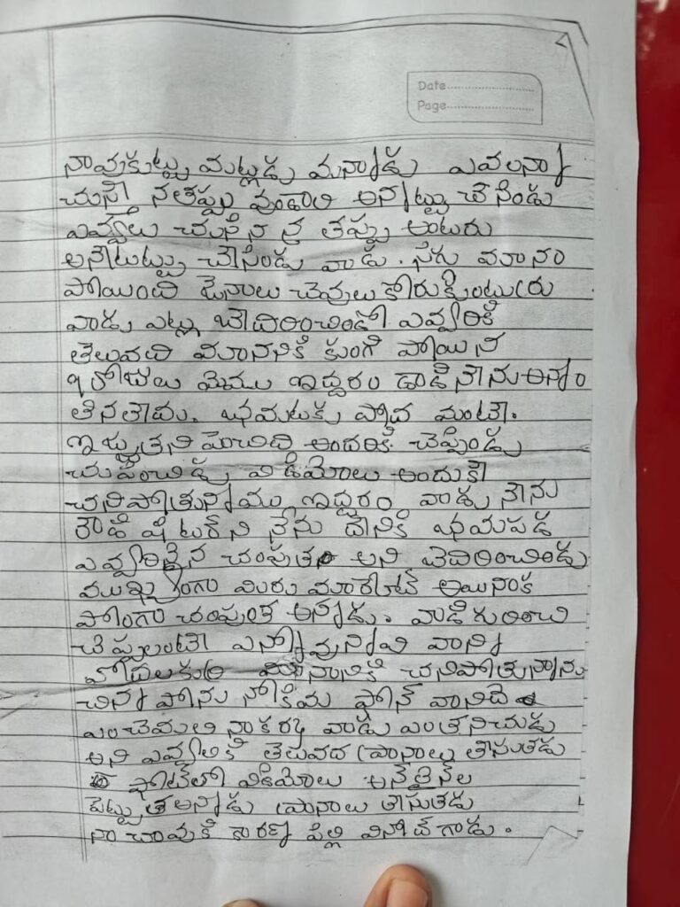 మా కుమార్తె రాసుకున్న సూసైడ్ నోట్ దొరకడంతో, ఆమె ఫోనులో ఉన్న వీడియోలు, ఫోటోలు వెతికి చూసి షాక్ అయ్యారు. ఇంట్లో ఎవరు లేని సమయంలో గాలిపల్లి గ్రామానికి చెందిన ముగ్గురు వ్యక్తులు ఇంట్లోకి వచ్చి కత్తులతో బెదిరిస్తూ, లైంగిక దాడి చేసి, వీడియోలు చిత్రీకరించారని ఆ బాలిక తండ్రి ఆరోపించారు.