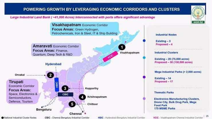 జాతీయ, ప్రపంచ నమూనాలతో పోలిక: భారతదేశంలో ఇలాంటి ప్రాంతీయ నమూనాలు ఉన్నప్పటికీ, ఆంధ్రప్రదేశ్ మోడల్ విలక్షణంగా నిలుస్తోంది. గుజరాత్ మోడల్ (GIDC) వృద్ధిని సాధించినా.. ‘గోల్డెన్ కారిడార్’లో వృద్ధి కేంద్రీకృతం అయ్యిందనే విమర్శ వుంది. ఈ రిస్కును AP నివారించాలి.